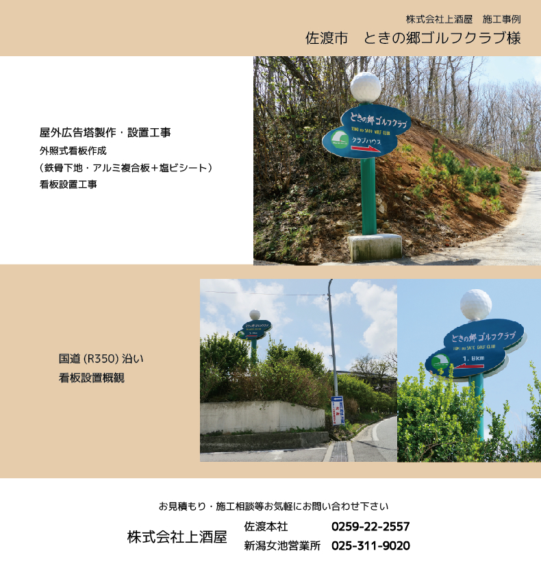 ときの郷ゴルフクラブ様 屋外広告塔製作・設置工事(佐渡市)