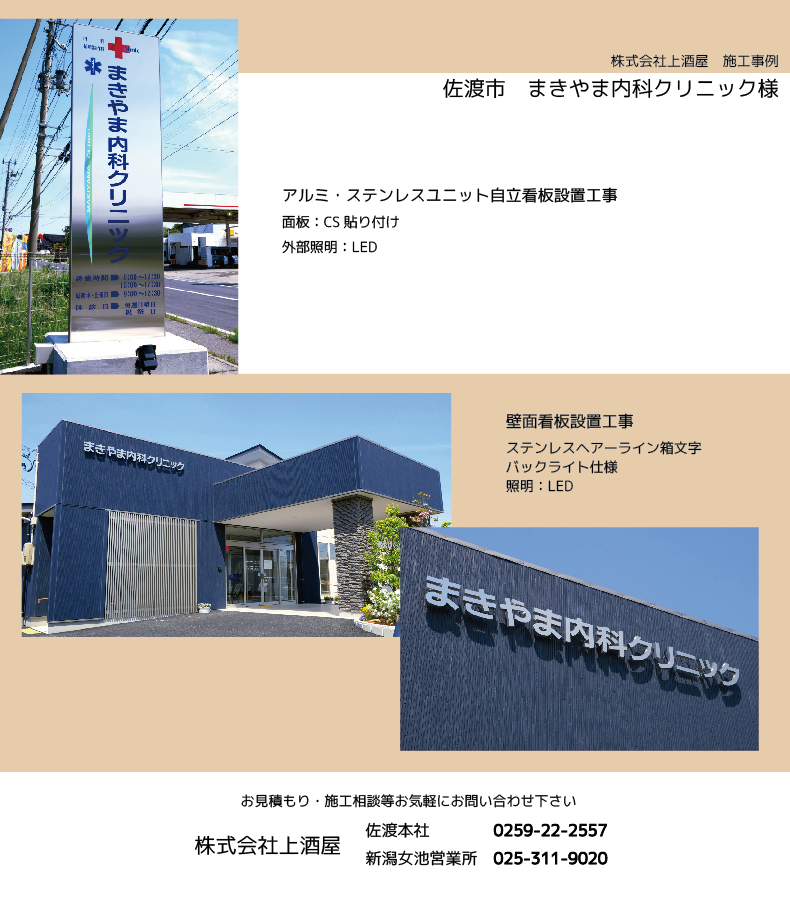 佐渡市のまきやま内科クリニック様のLED看板製作・設置工事を施工致しました
