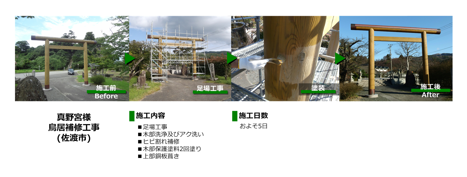 佐渡市真野の真野宮様の鳥居補修工事を施工致しました