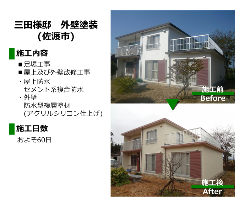 佐渡市三田様邸の外壁塗装を施工致しました