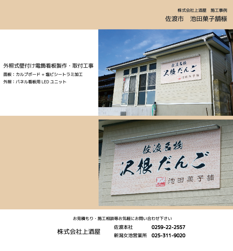 佐渡市の池田菓子舗様のLED看板製作・設置工事を施工致しました