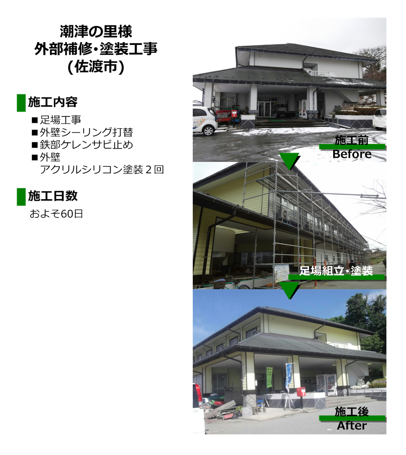 潮津の里様 外部補修及び塗装(佐渡市)