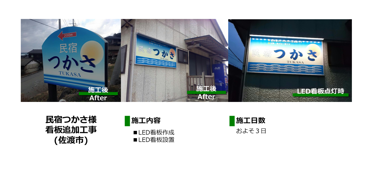民宿つかさ様 LED看板設置(佐渡市)