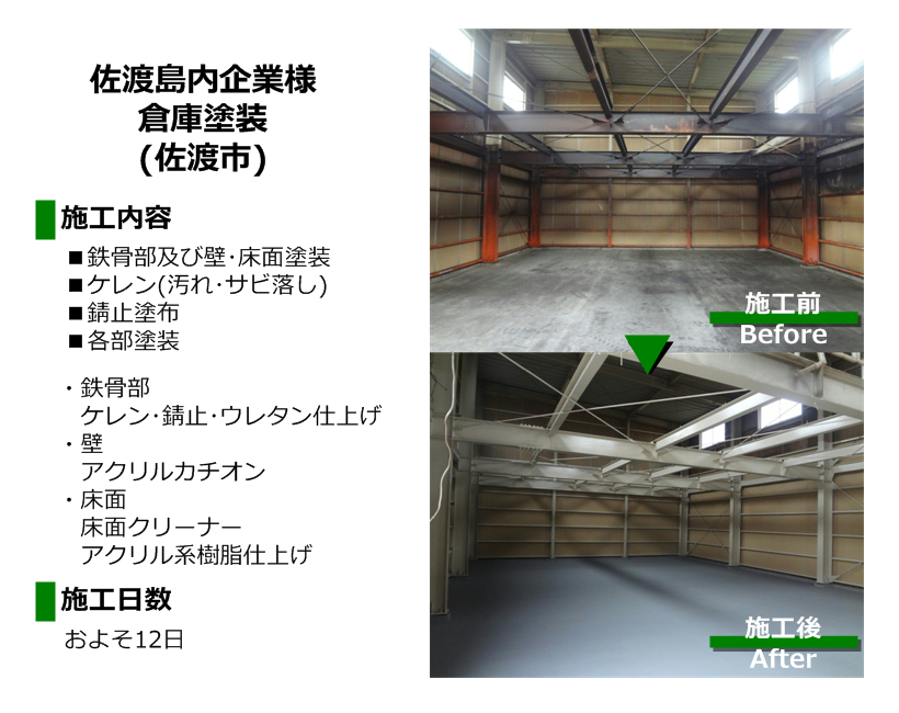 佐渡島内企業様の倉庫内塗装を施工致しました